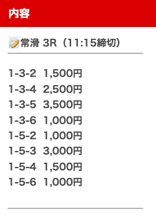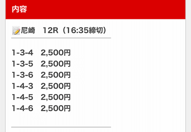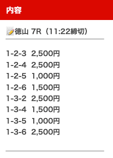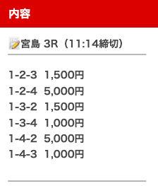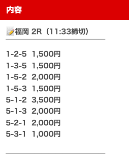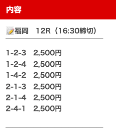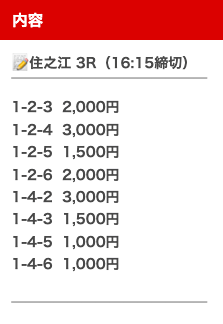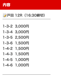 | 買い目 | オッズ | 投資金額 |
