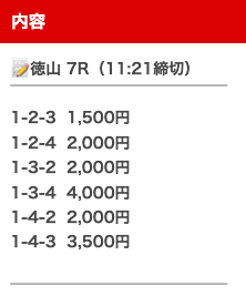 - 券種:3連単(点数変動)