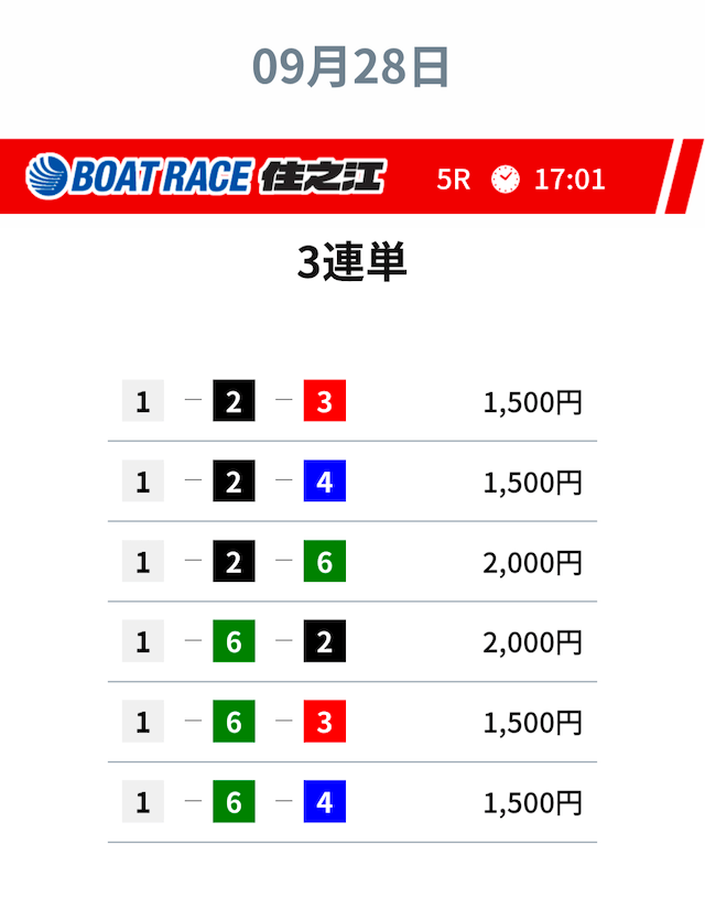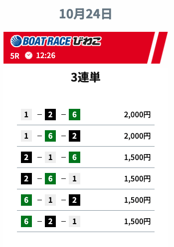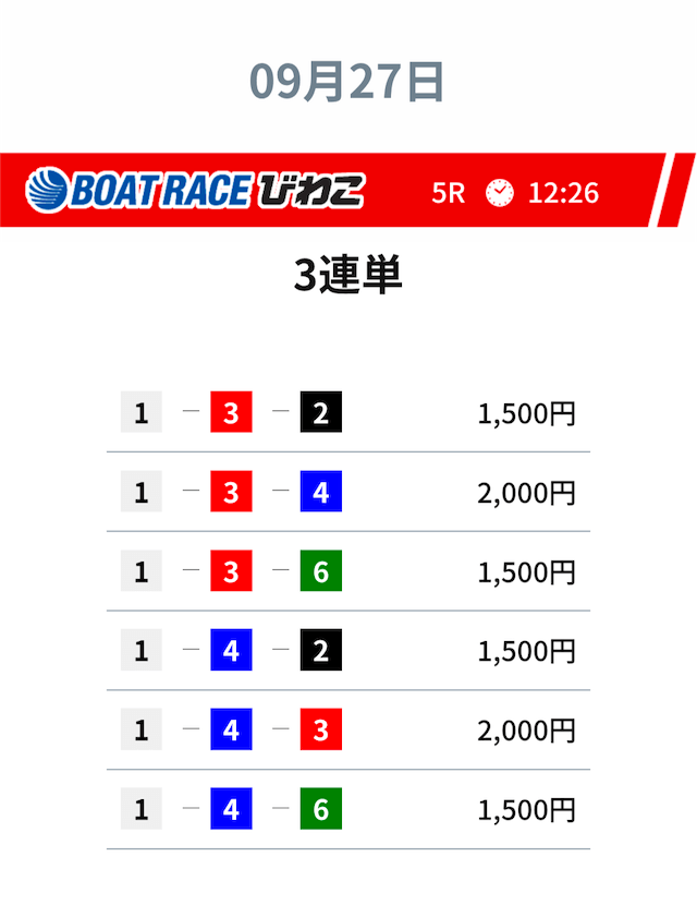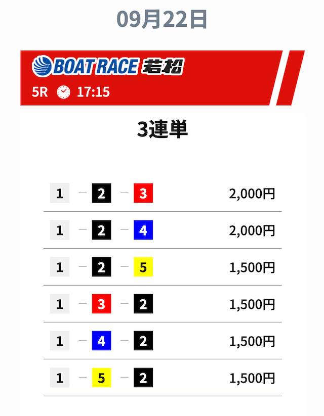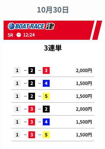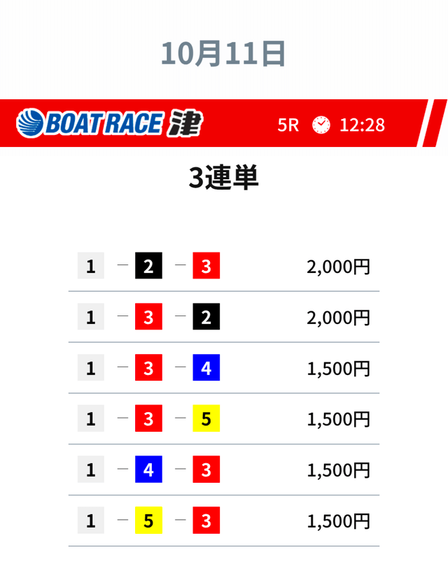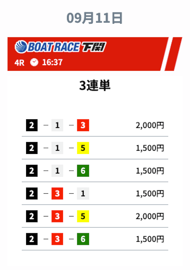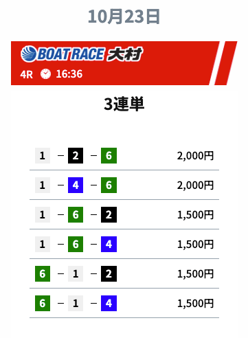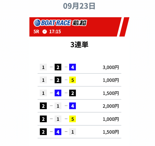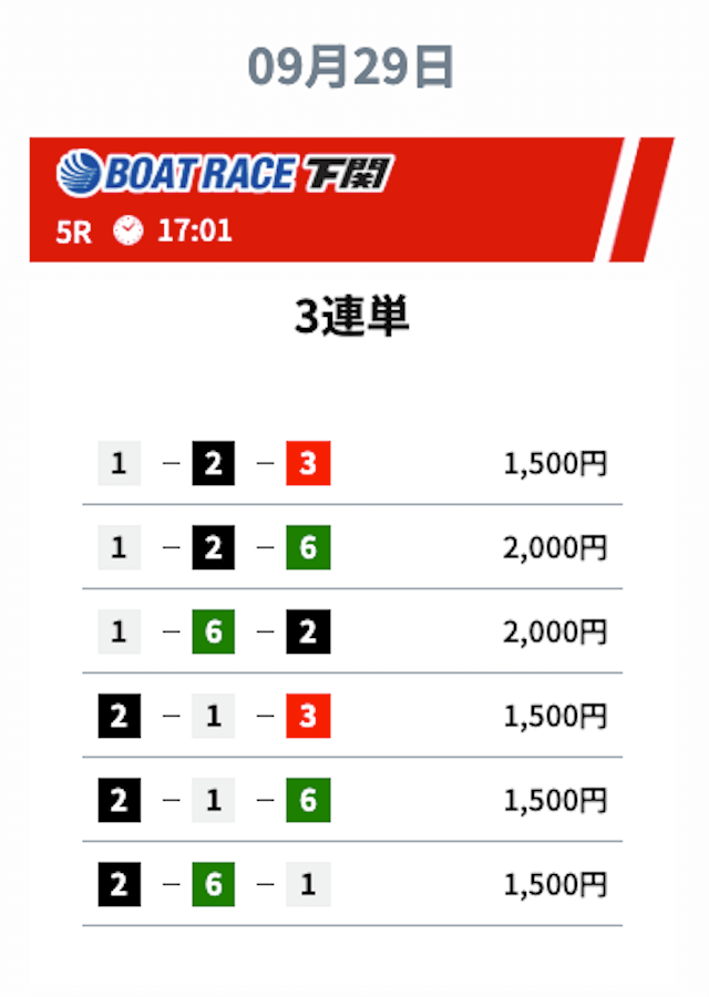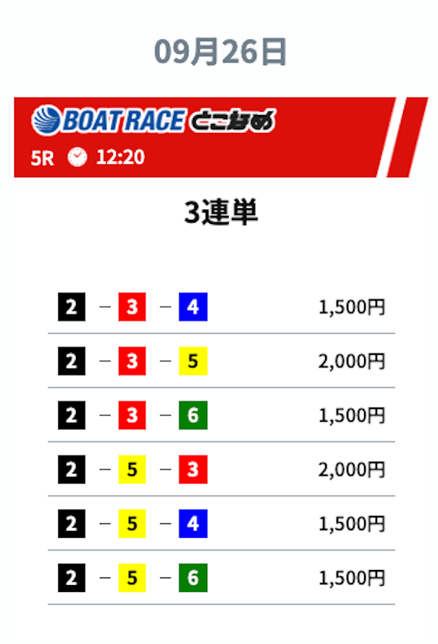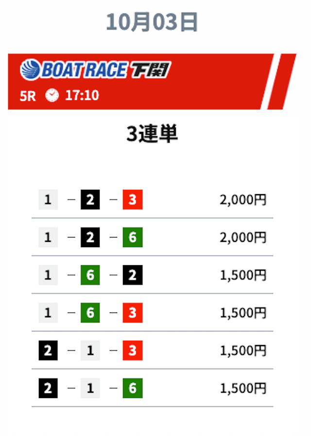 対象は徳山5Rで、①-②③⑥-②③⑥という組み合わせ。