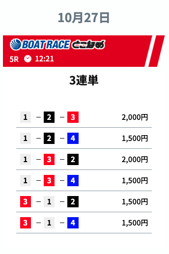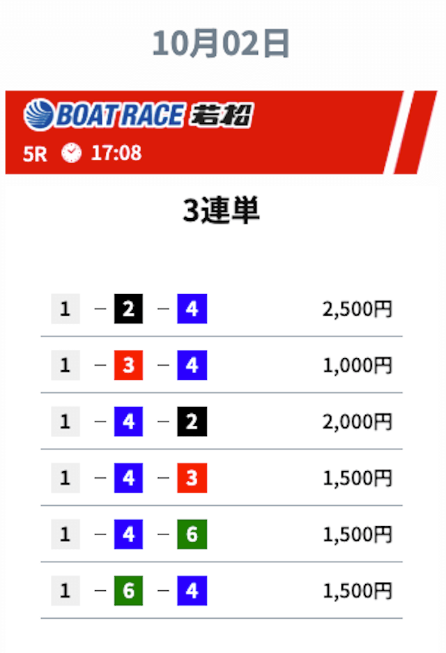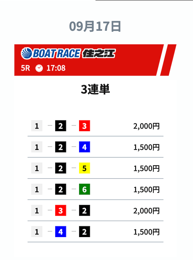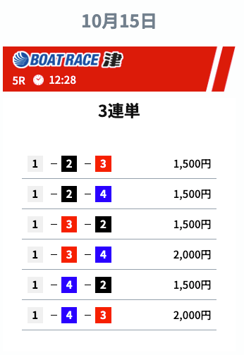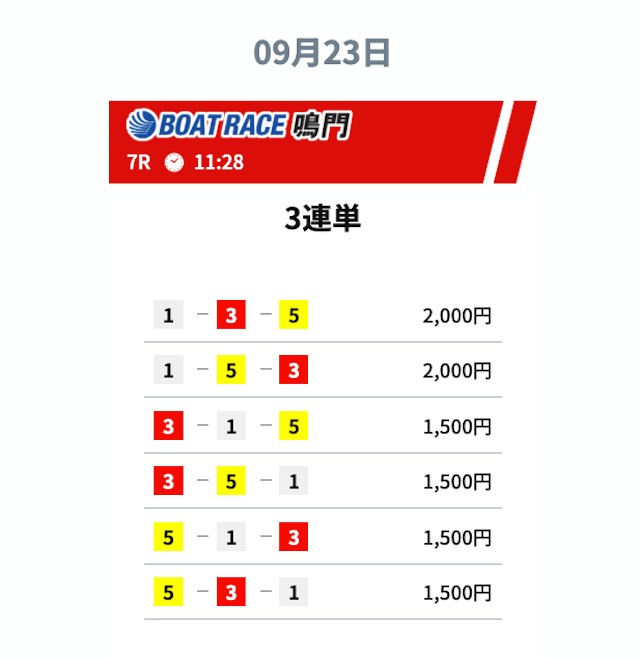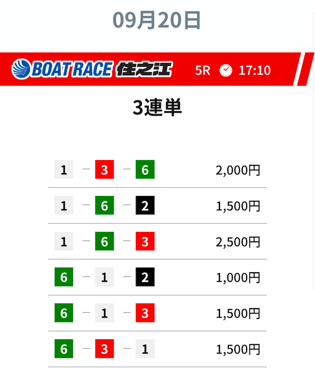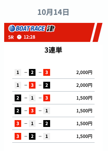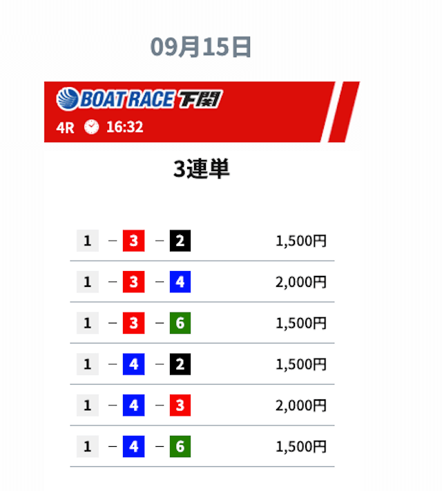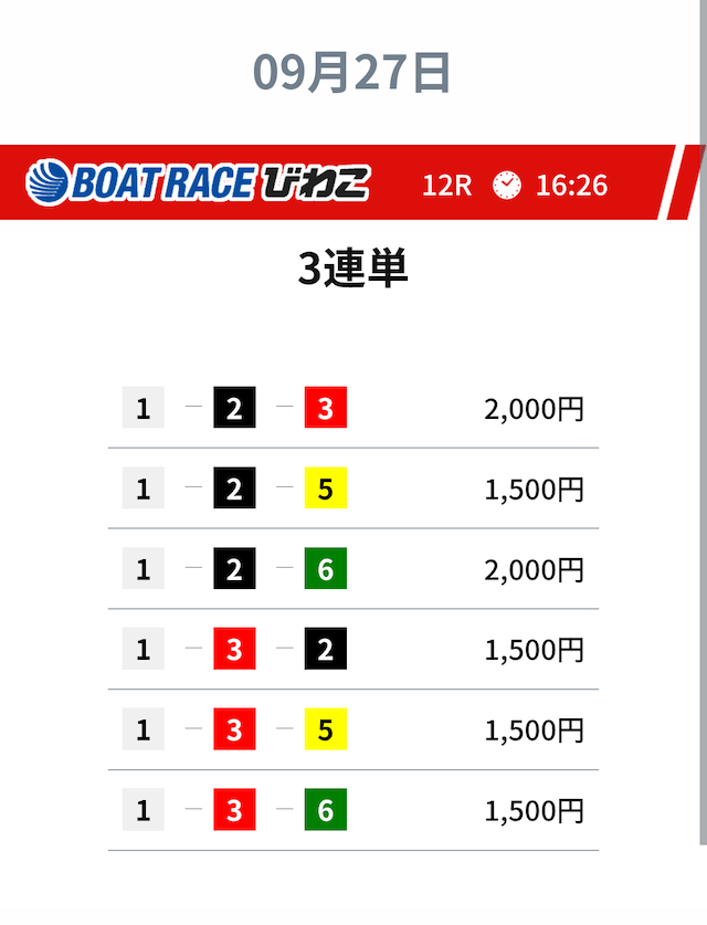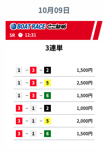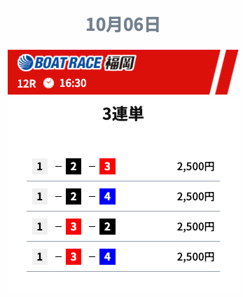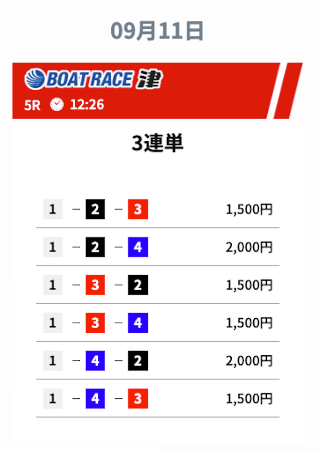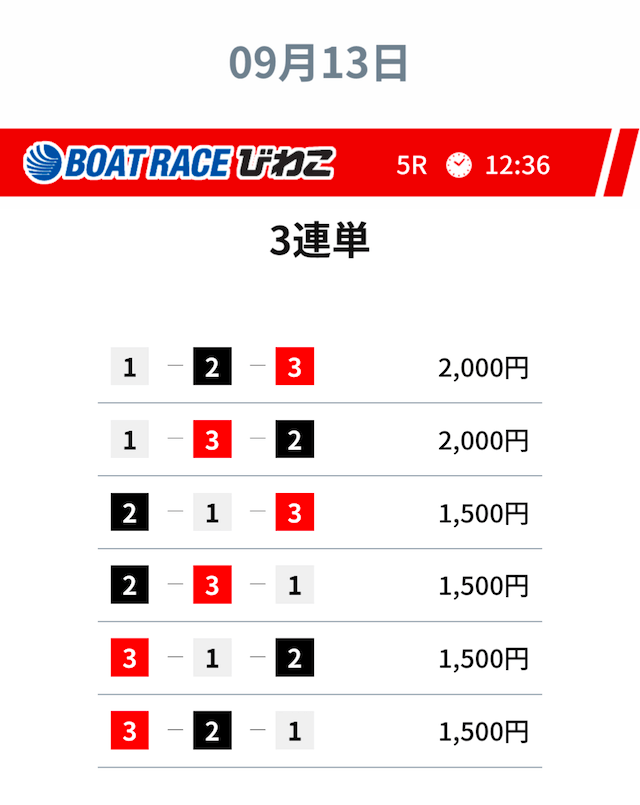 対象は徳山5Rで、①-②③⑥-②③⑥という組み合わせ。