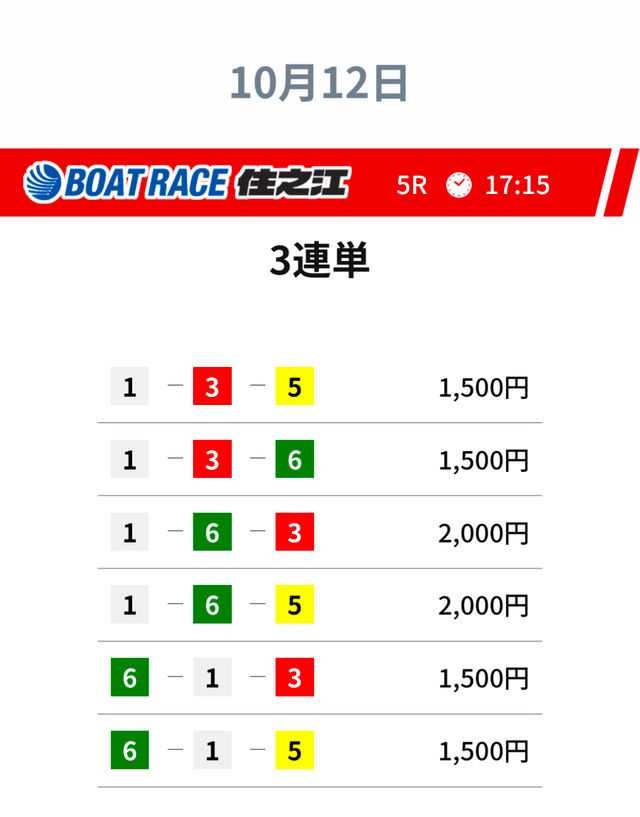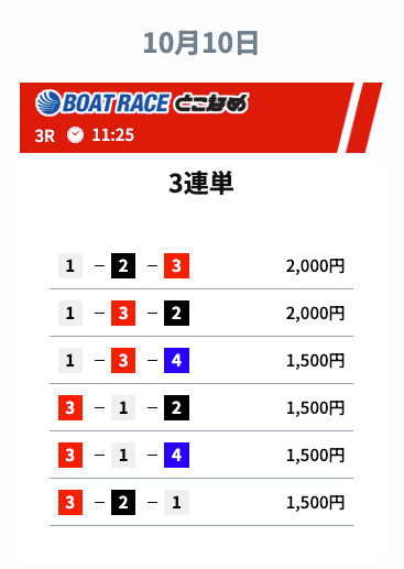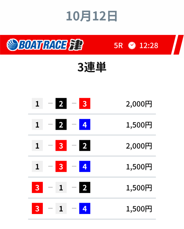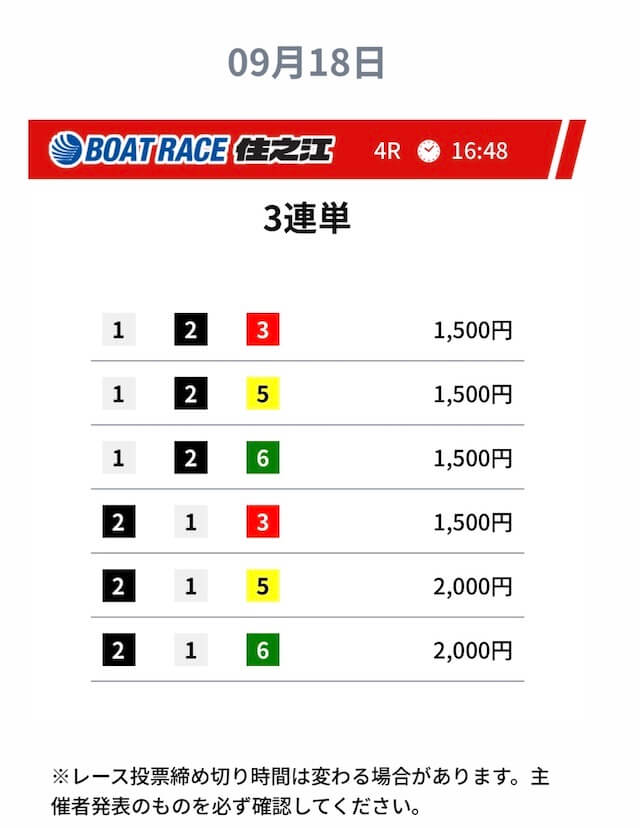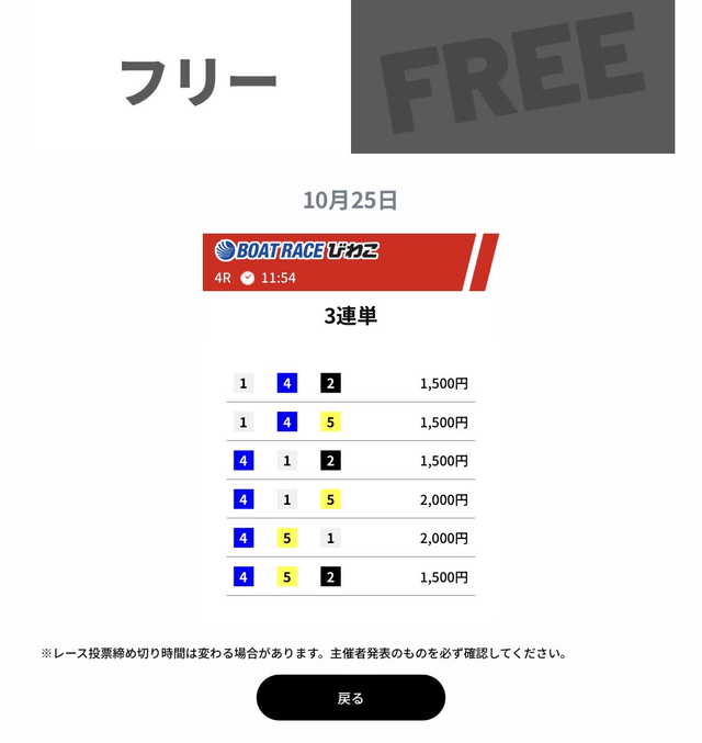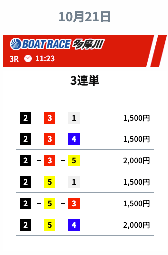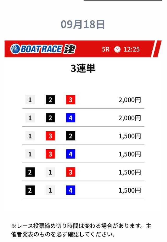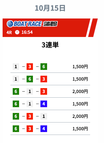 | 2025/3/15 レギュラー 情報料金+舟券代 18,000円+10,000円 |