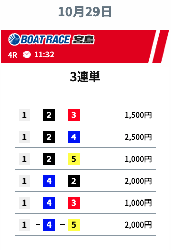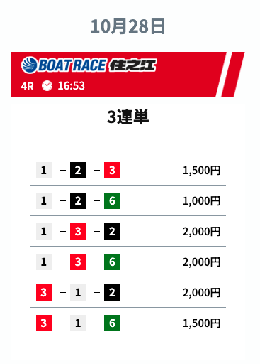 | 2025/6/29 レギュラー 情報料金+舟券代 18,000円+10,000円 |