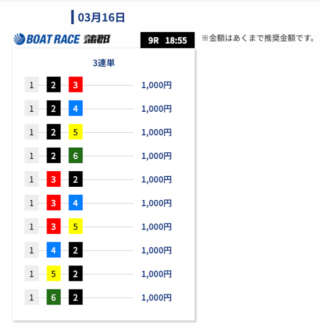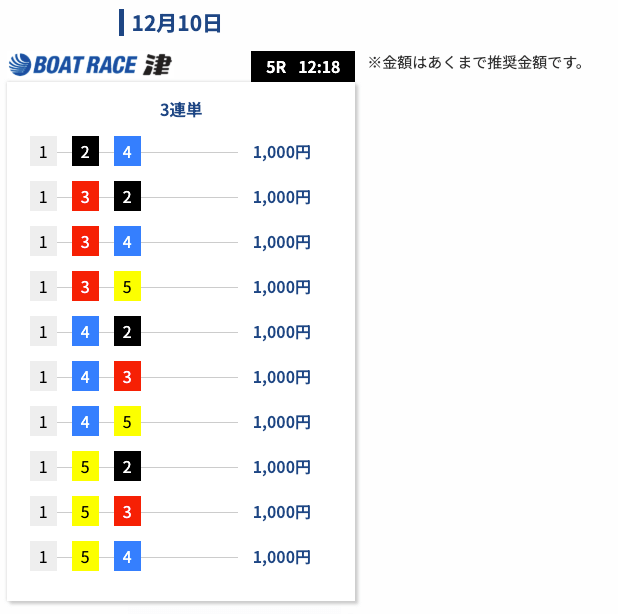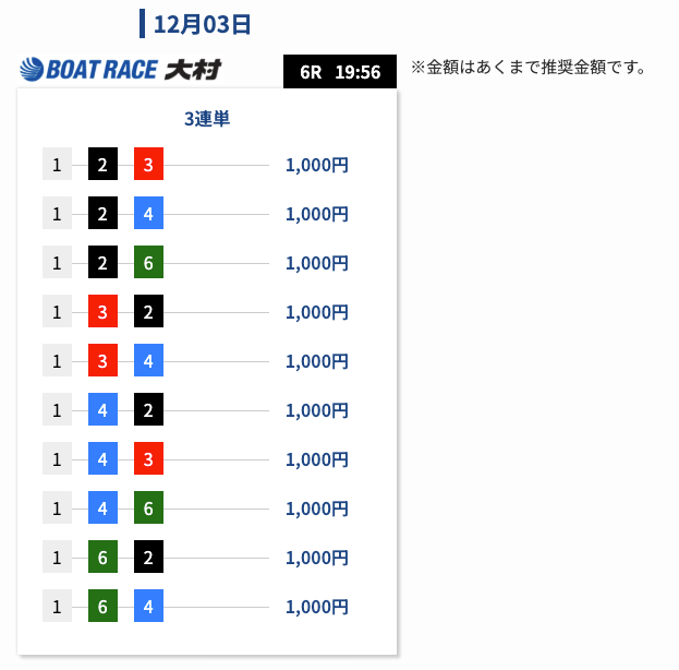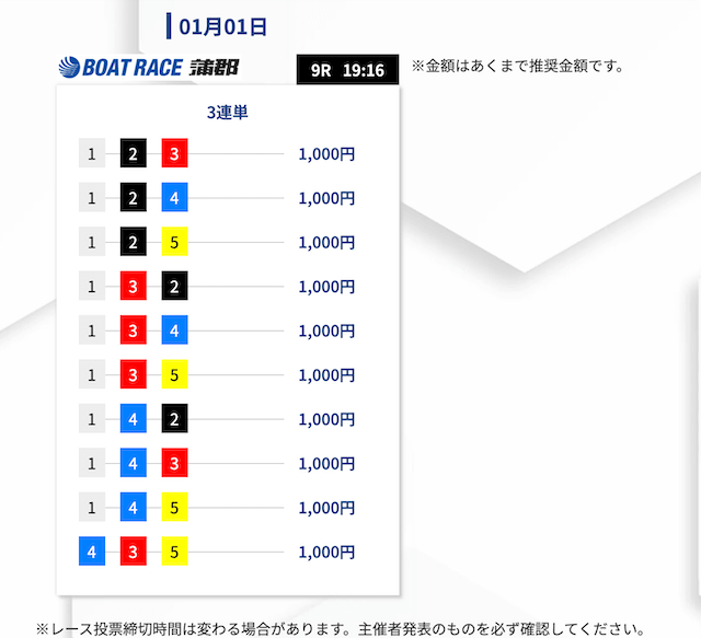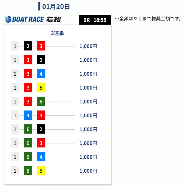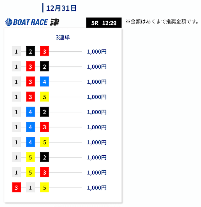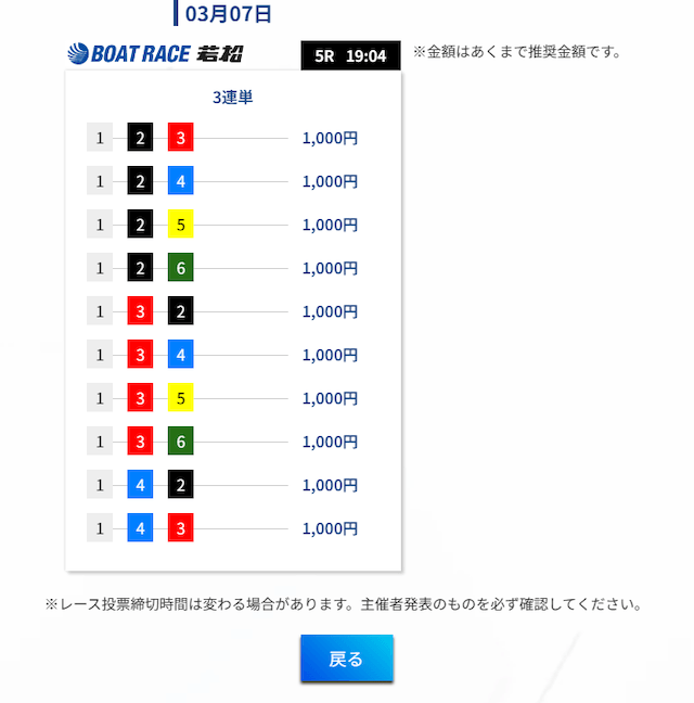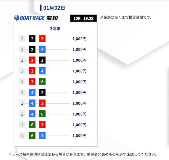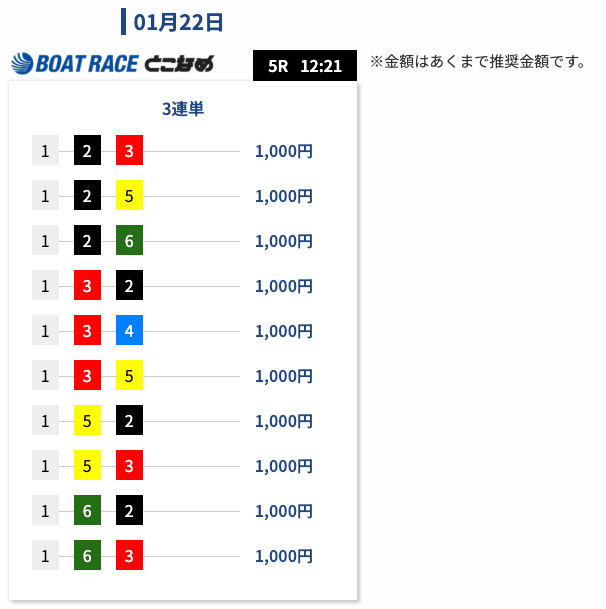 以上を踏まえて、出走表と買い目を見て気になったのは軸を①号艇に絞っていることです。