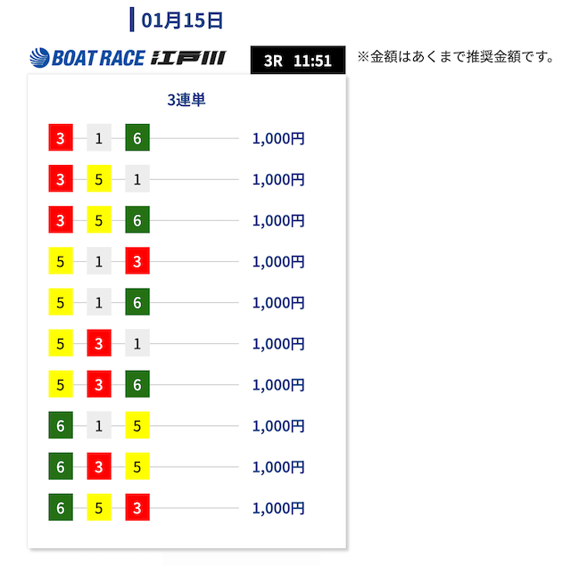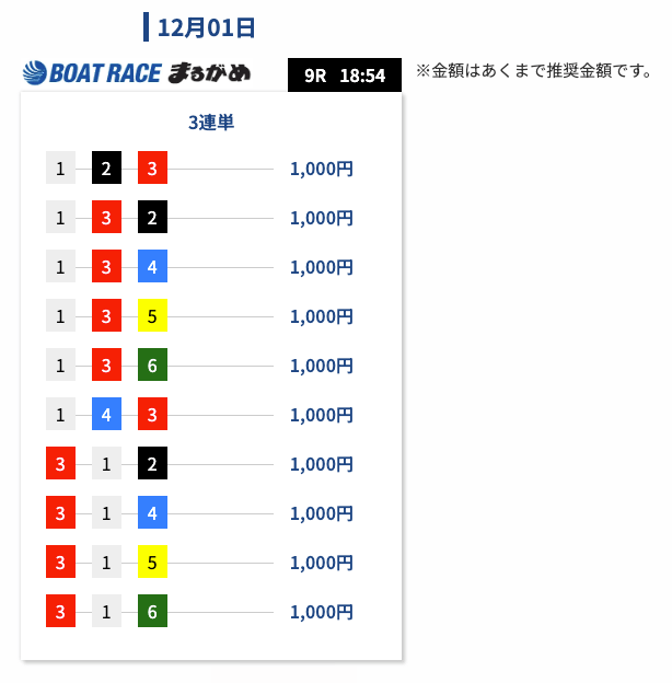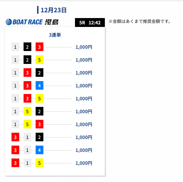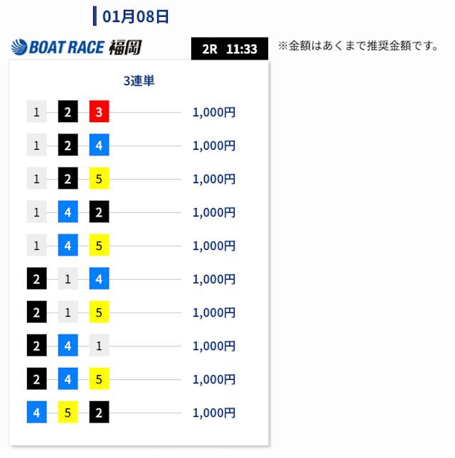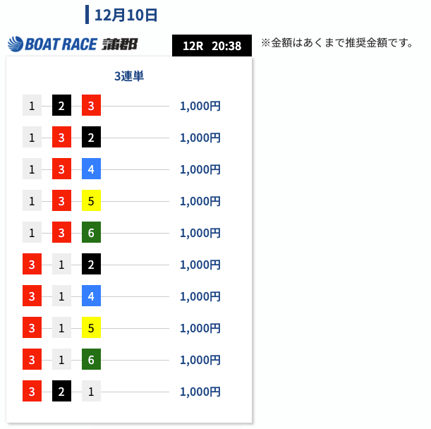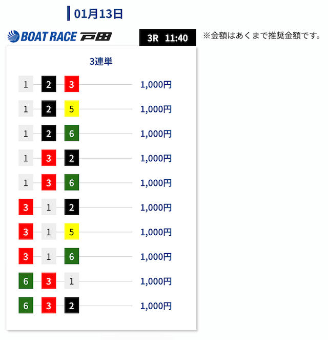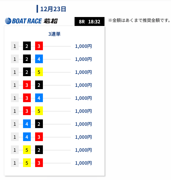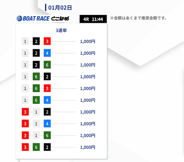 以上を踏まえて、出走表と買い目を見て気になったのは軸を①号艇に絞っていることです。