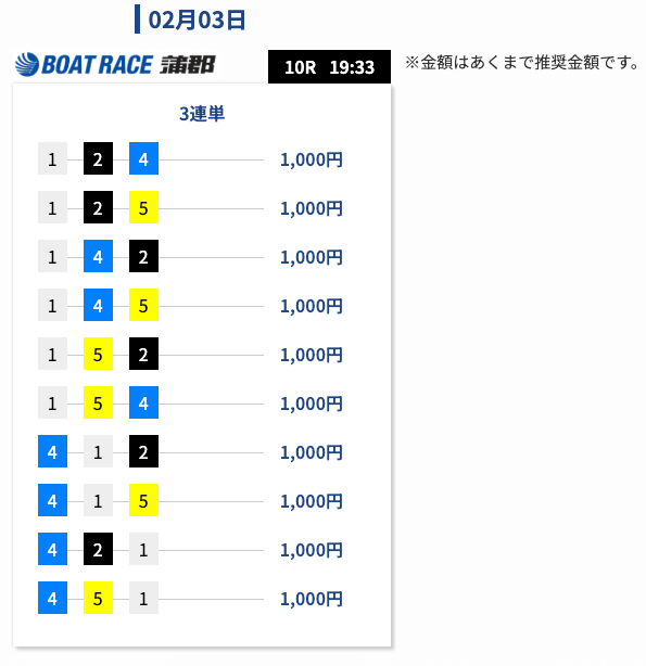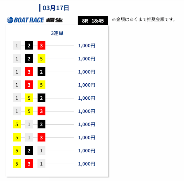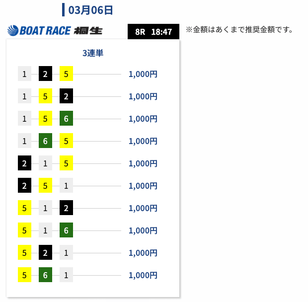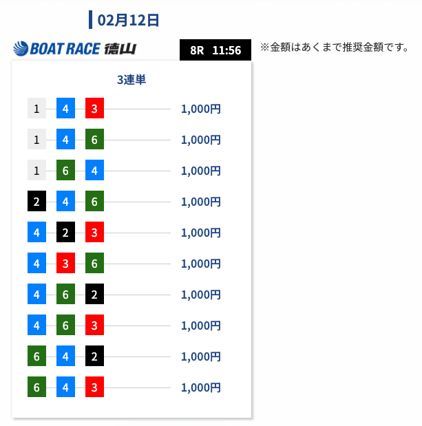 - 券種:3連単(5-12点)