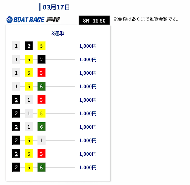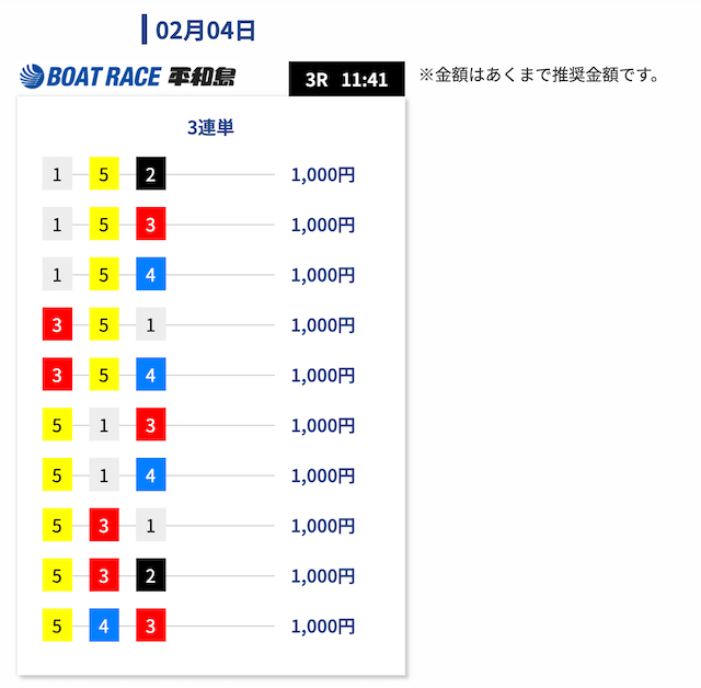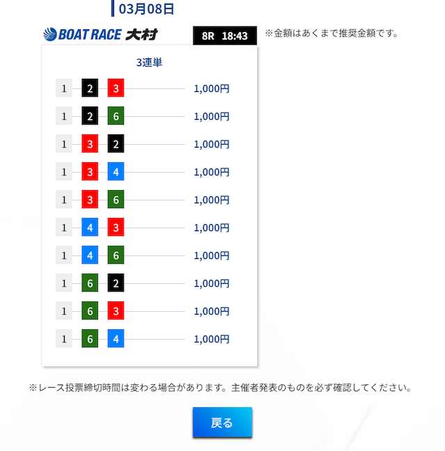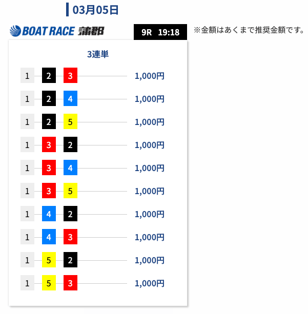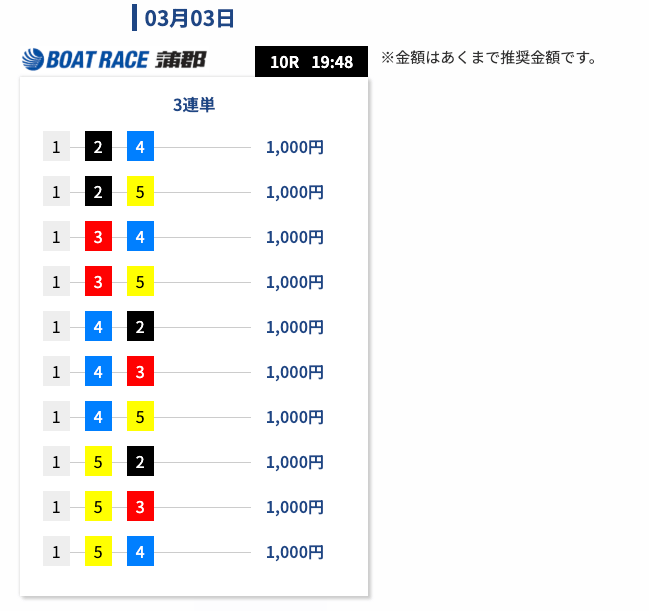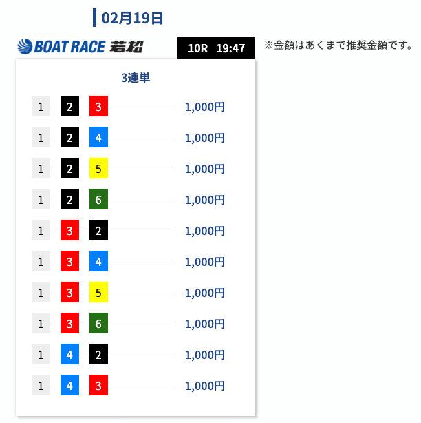 - 舟券代:10,000円