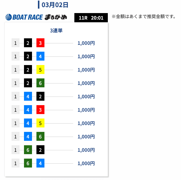 うなぎパイ浜名湖の情報で¥12,000。当たった瞬間、仕事仲間が「まじか」と笑ってました。無料でも結果が出る時があるし、買い目が明快だから迷わない。軽く見るつもりだったのに、気づけば毎日チェックしています。投稿日:2026/03/12
