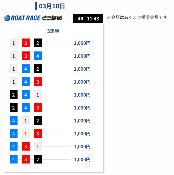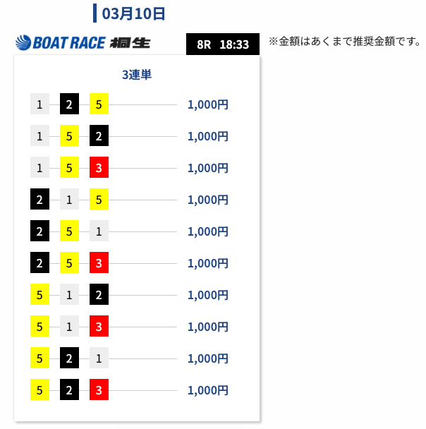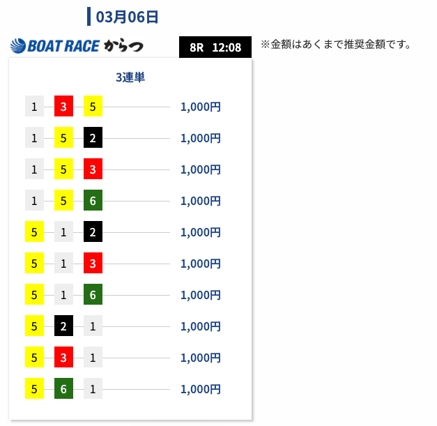 ガソリン代(´;ω;`)有料予想は一撃で回収できるような構成になっている印象です。 勝てるまで少し我慢が必要なときもありますが、当たった時の伸びはかなり魅力的だと思います。投稿日:2026/03/09