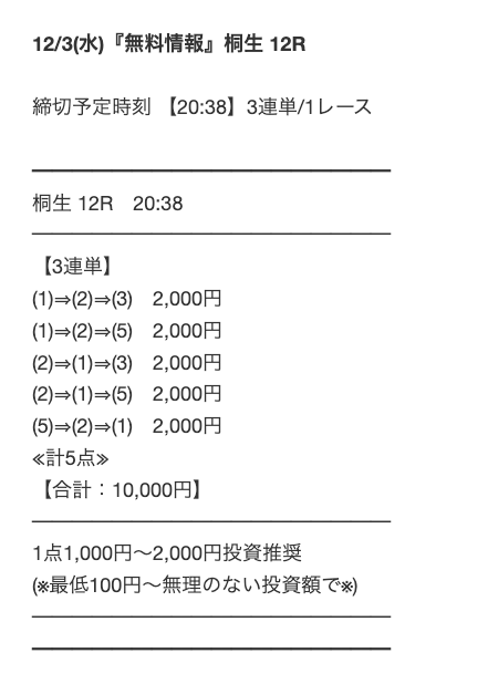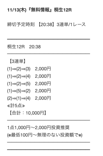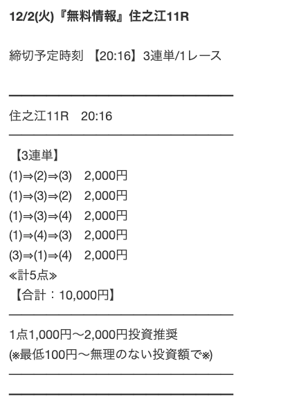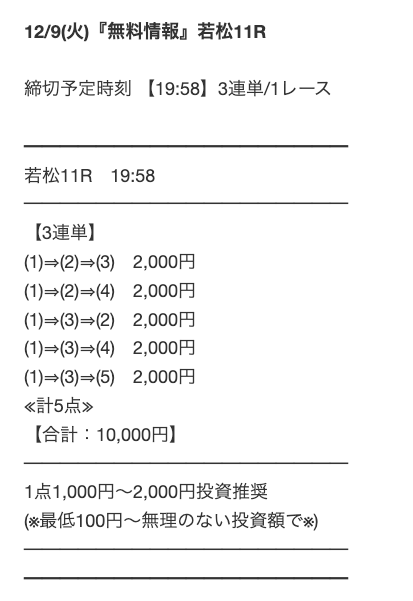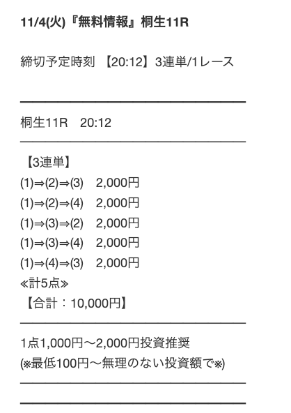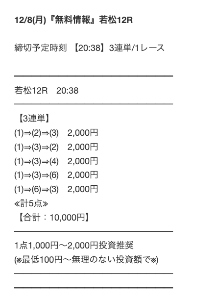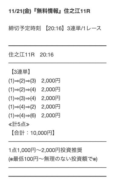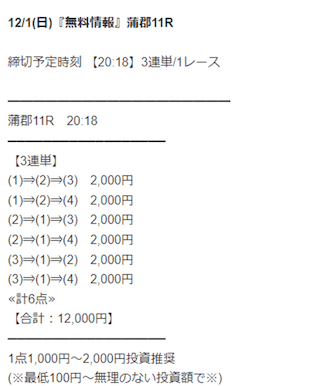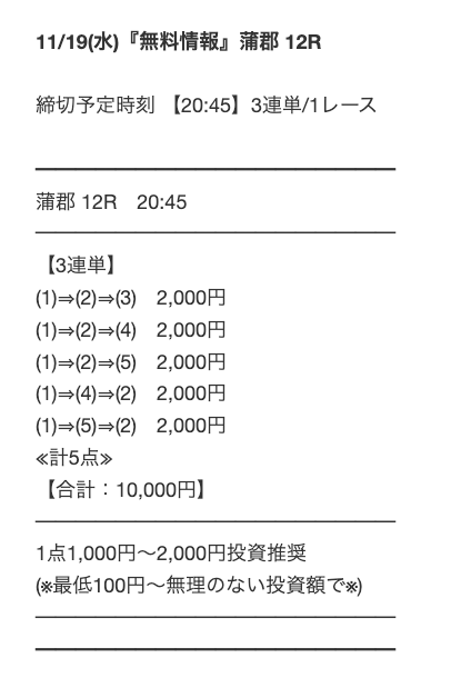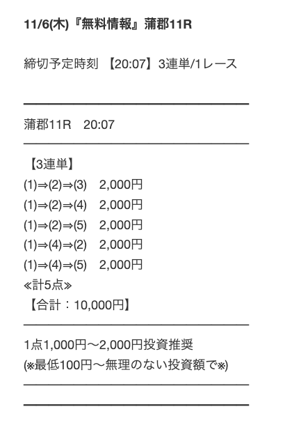 口コミ評価悪かったから不安だったけど、当たるじゃん!普通に1レースで1万円くらい稼げました。