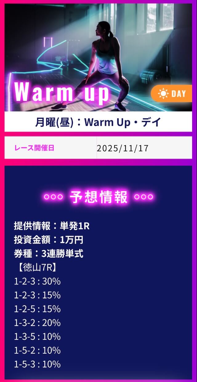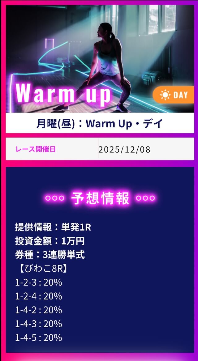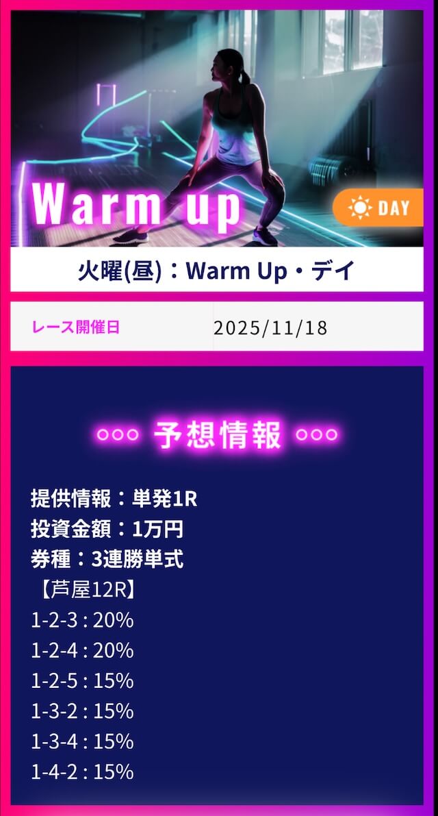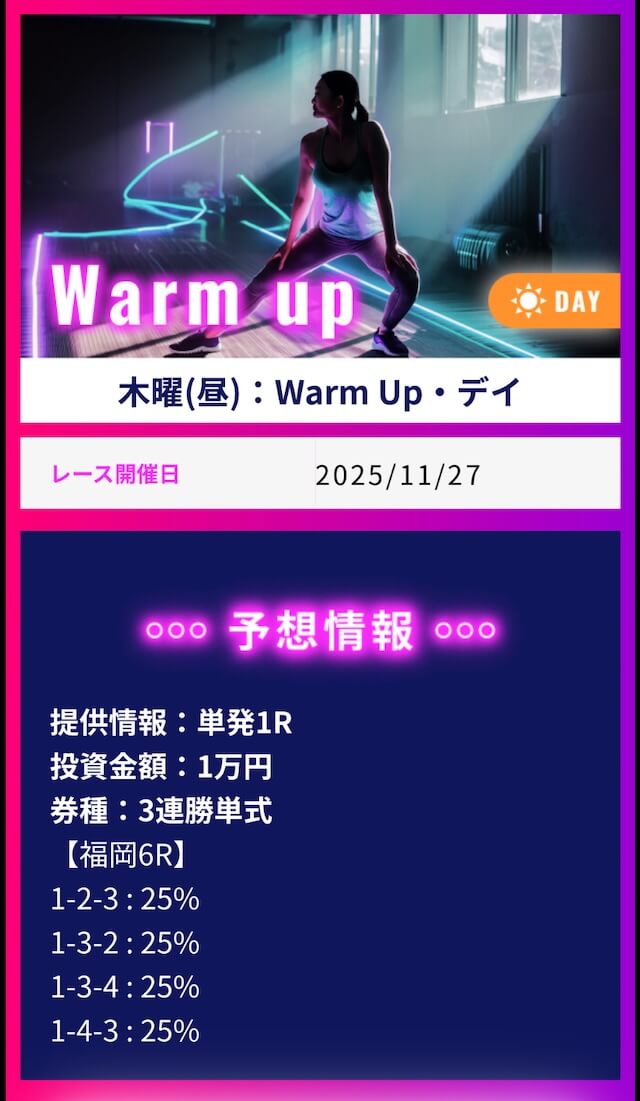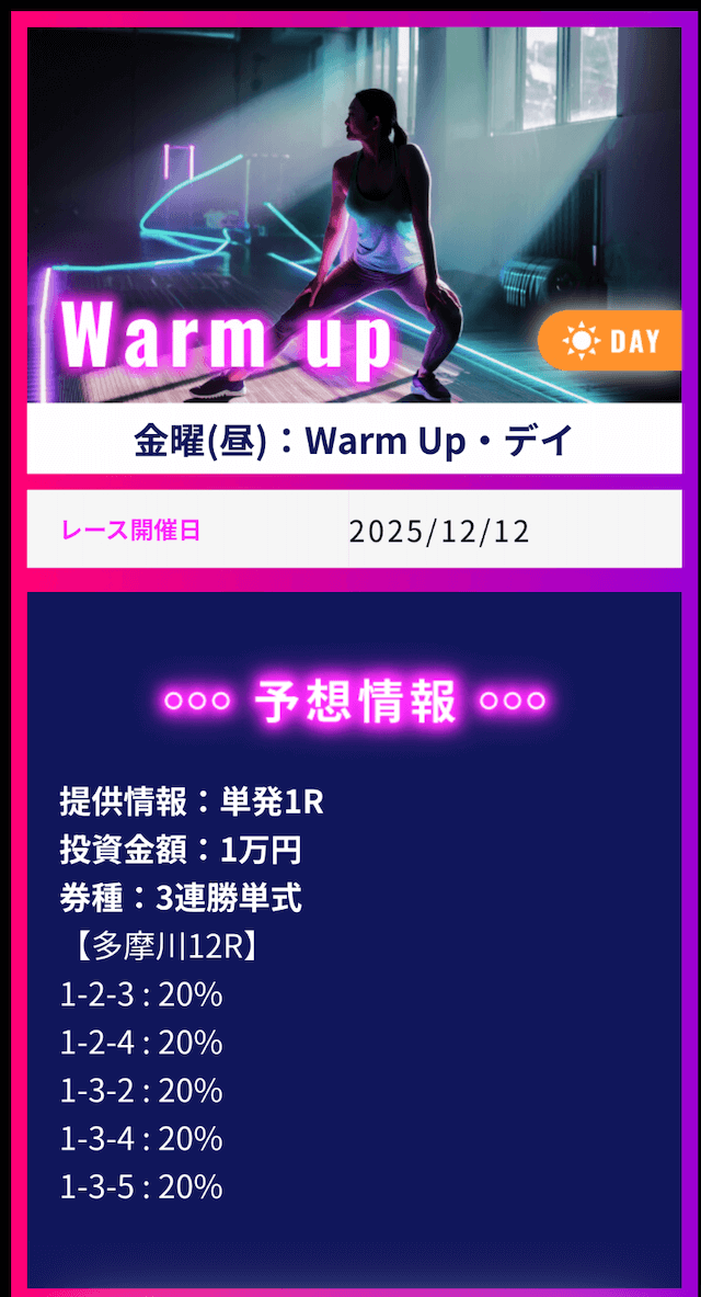 もし有料予想に参加される際は、夕方〜夜に届くメッセージも見逃さないしましょう!