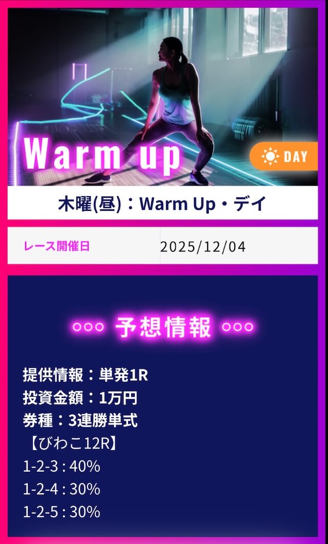 直前で販売され、予想精度が高い上に格安で参加できるようです。