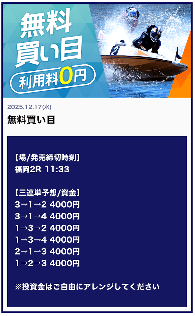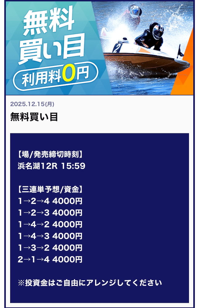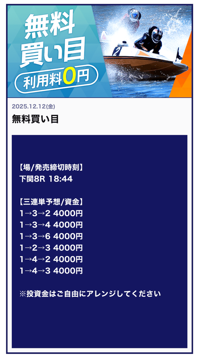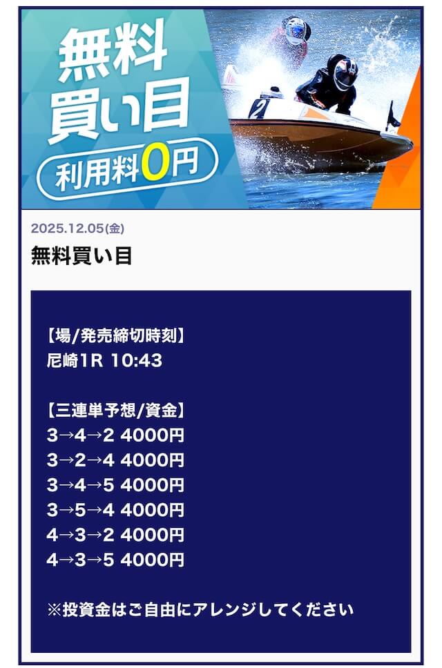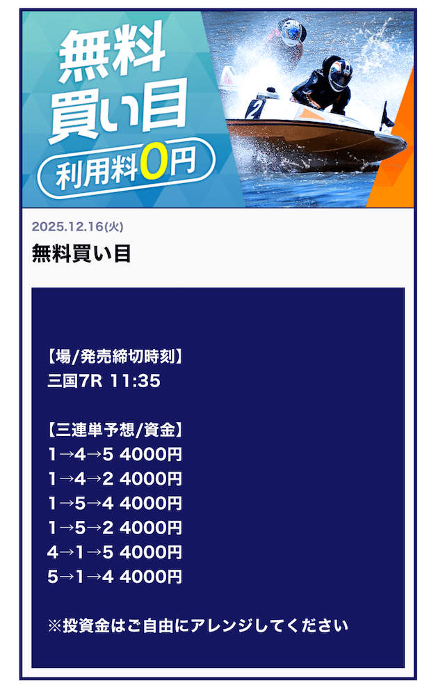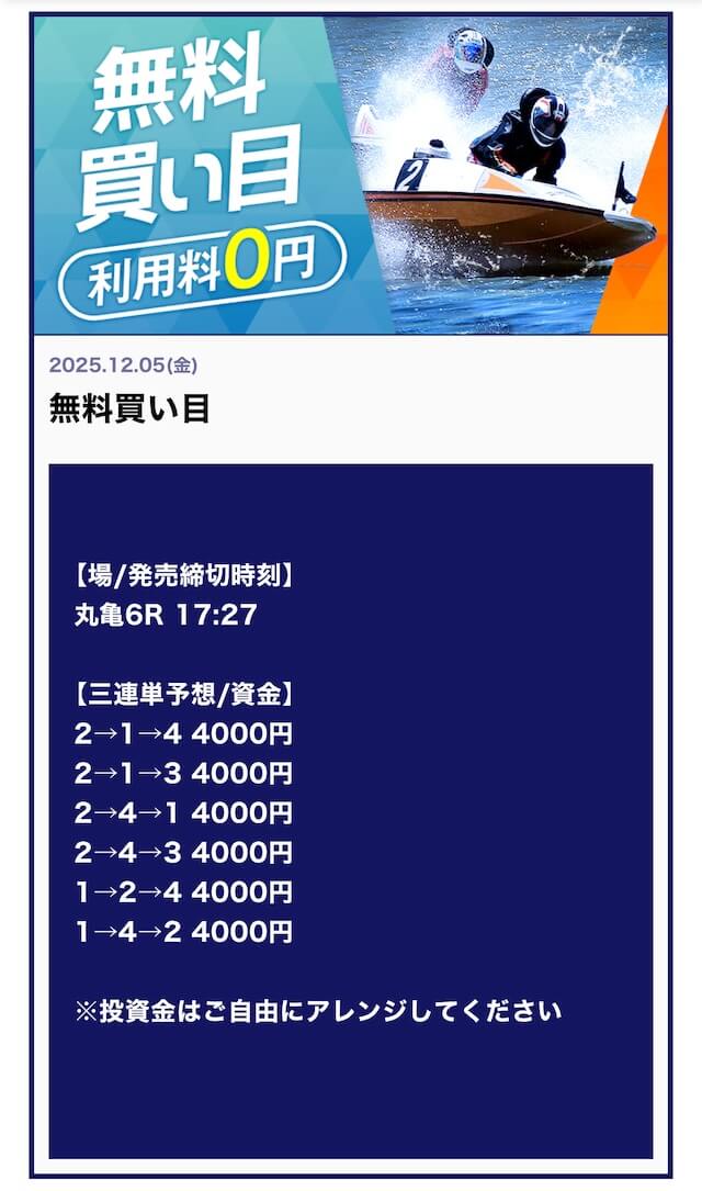 他の競艇予想サイトで言う「有料予想クラス」の予想レベルです!