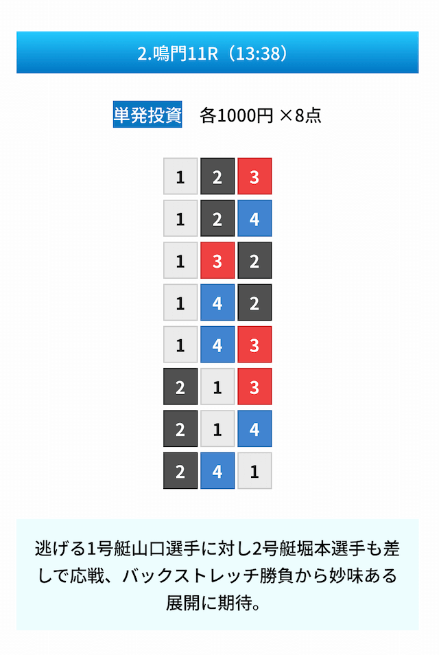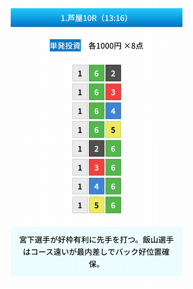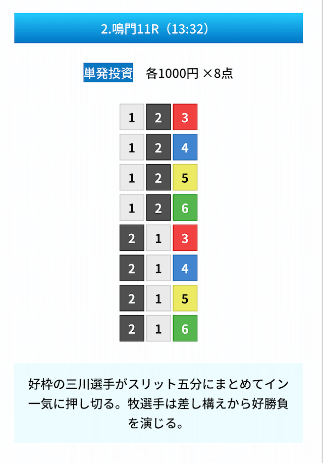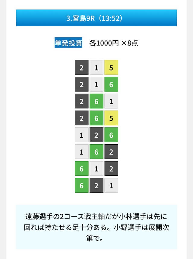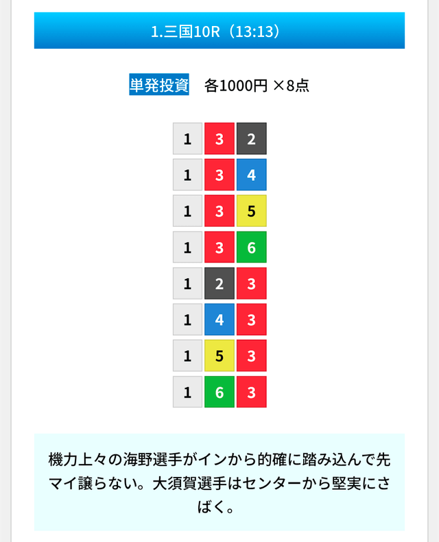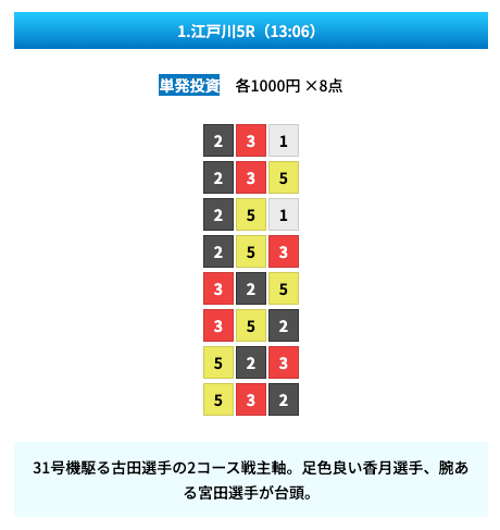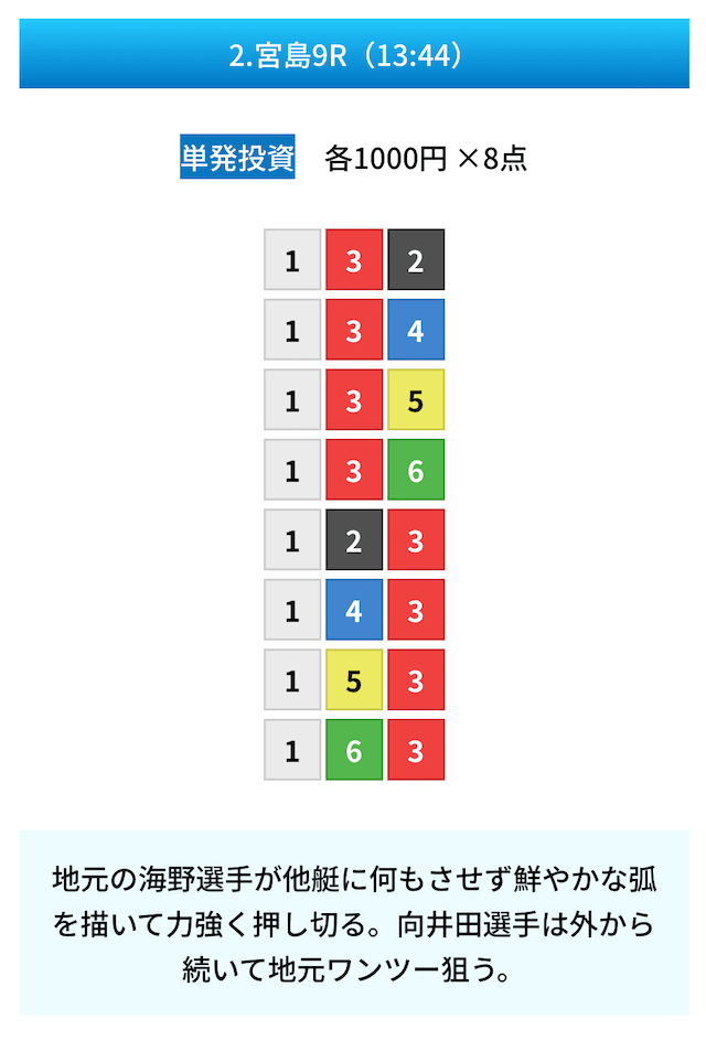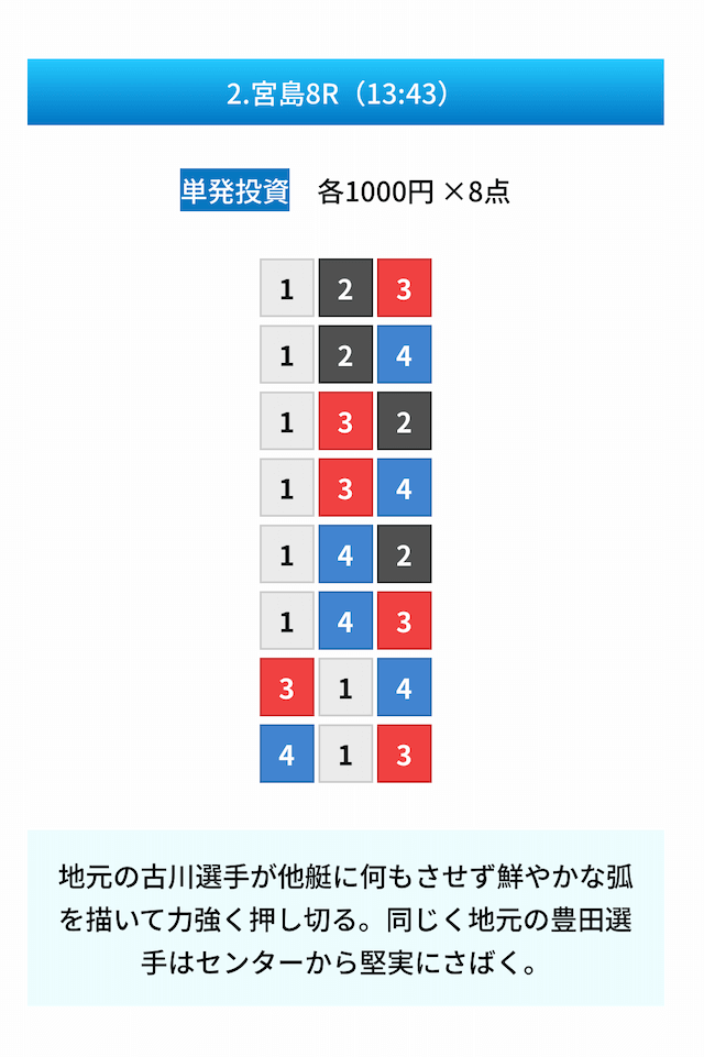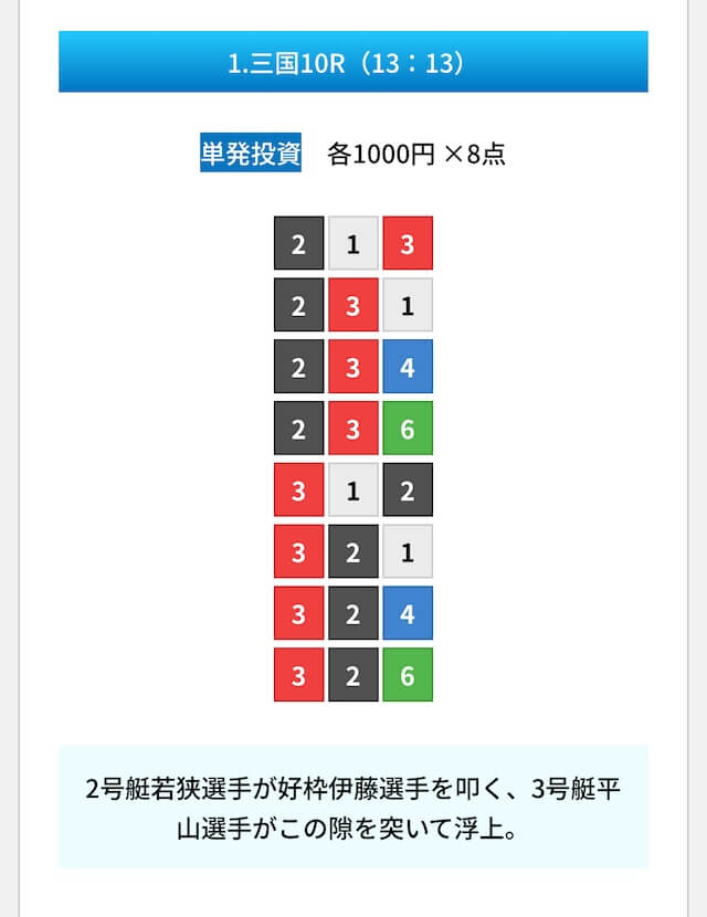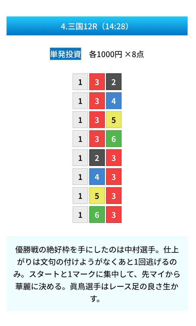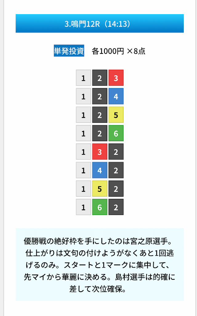 - 無料予想の見解や予想の根拠があって凄い親切だと思った!しかも普通に勉強になるし舟券力が上がりそう。投稿日:2024/11/02