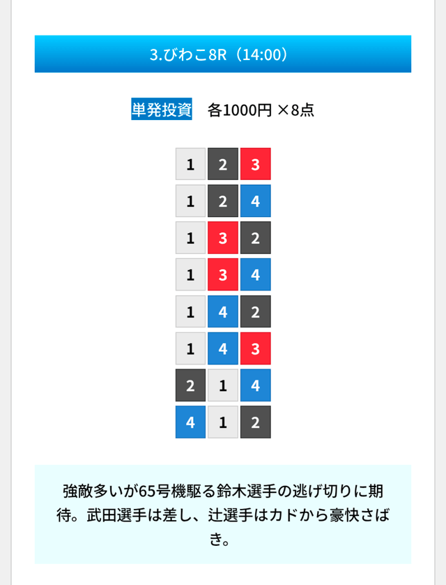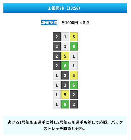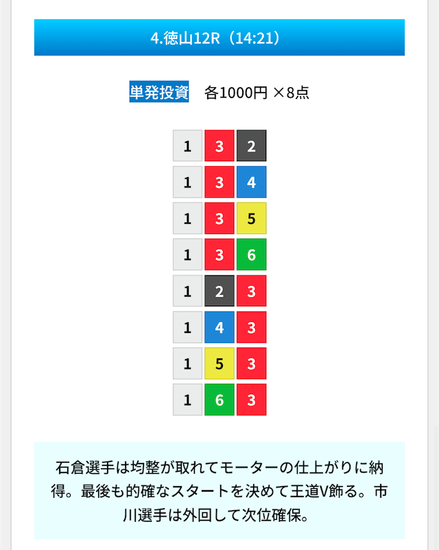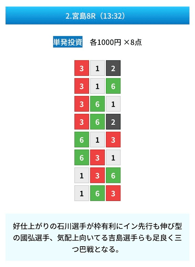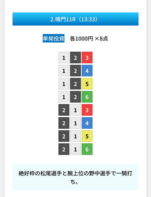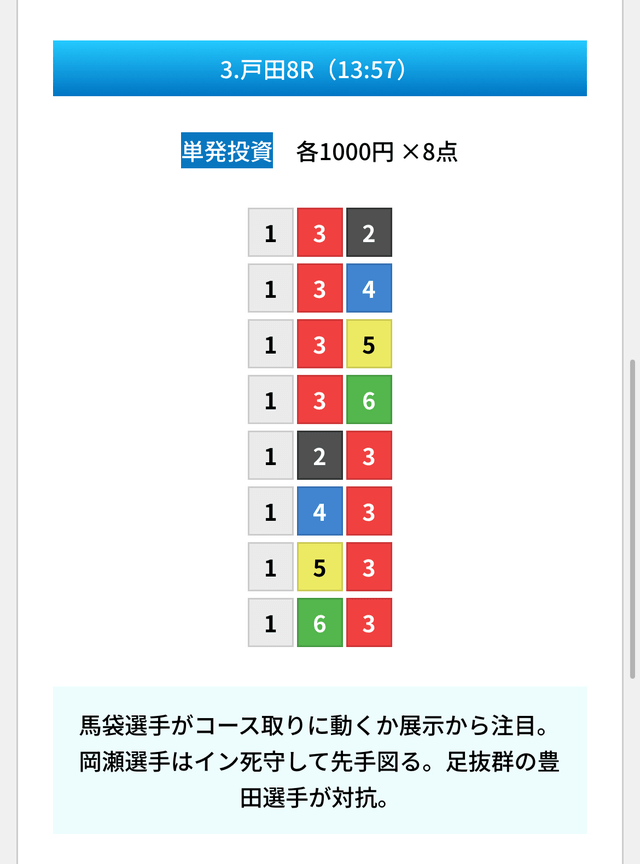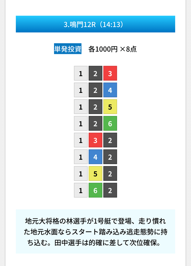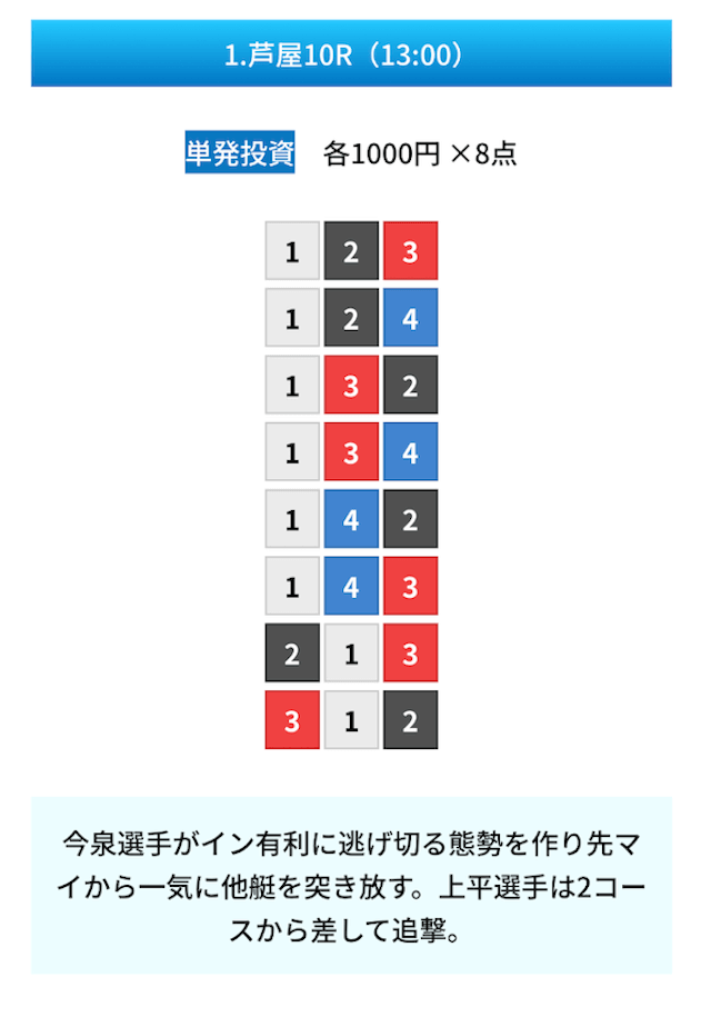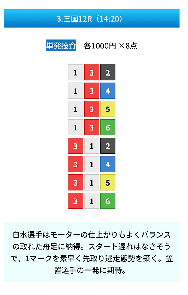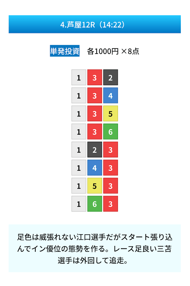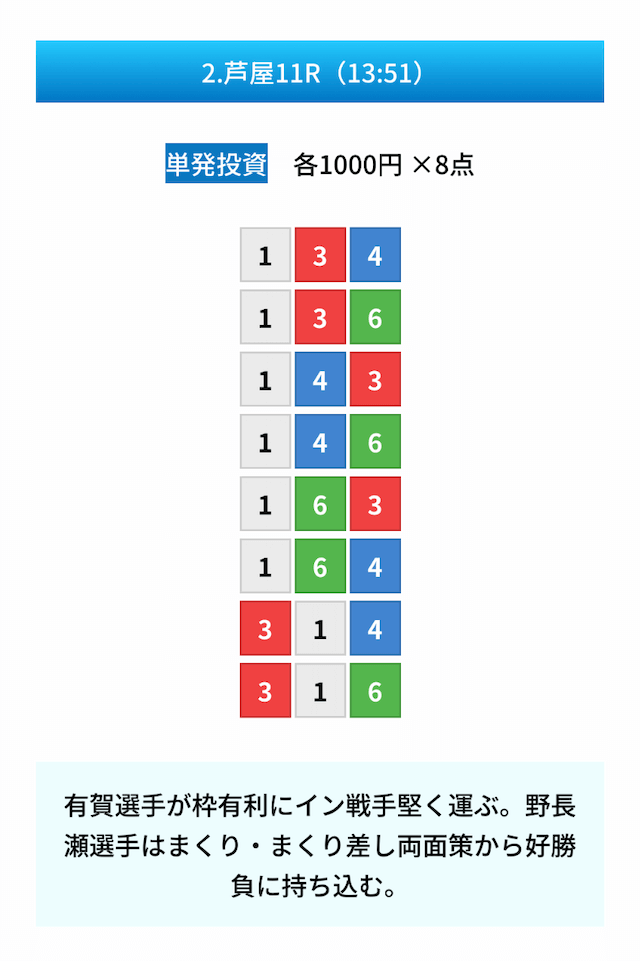 - 無料予想の見解や予想の根拠があって凄い親切だと思った!しかも普通に勉強になるし舟券力が上がりそう。投稿日:2024/11/02