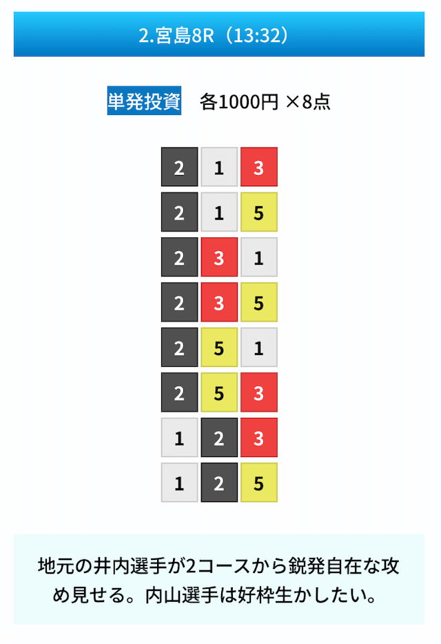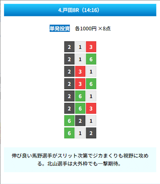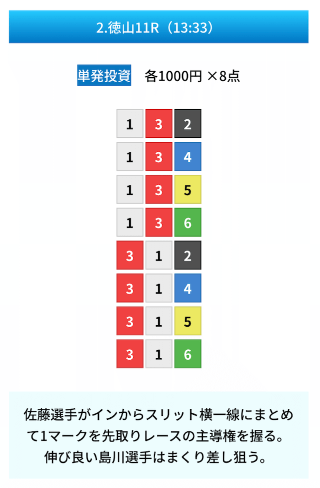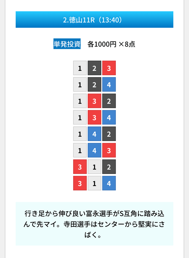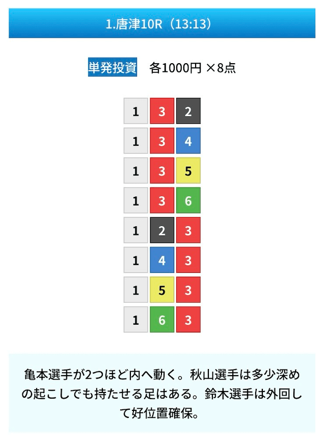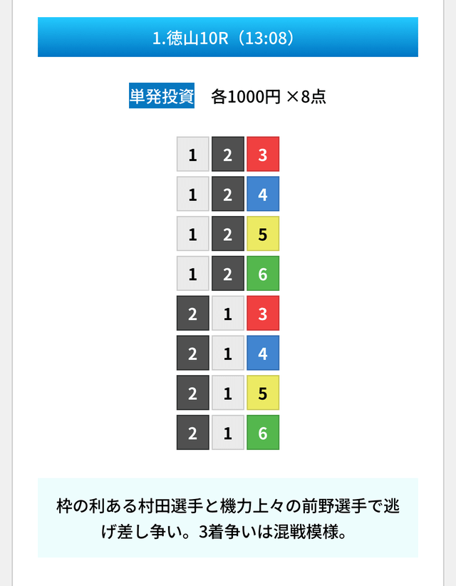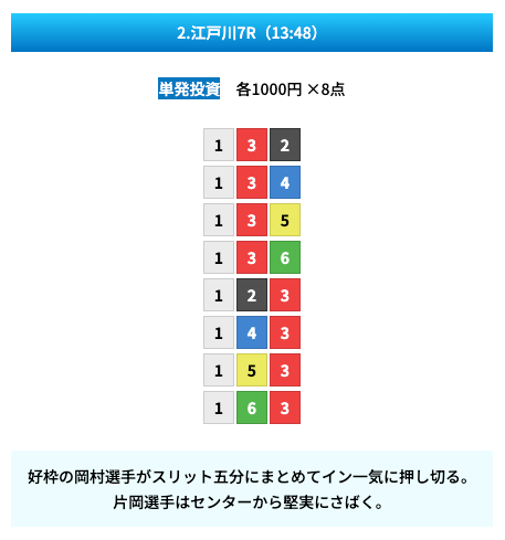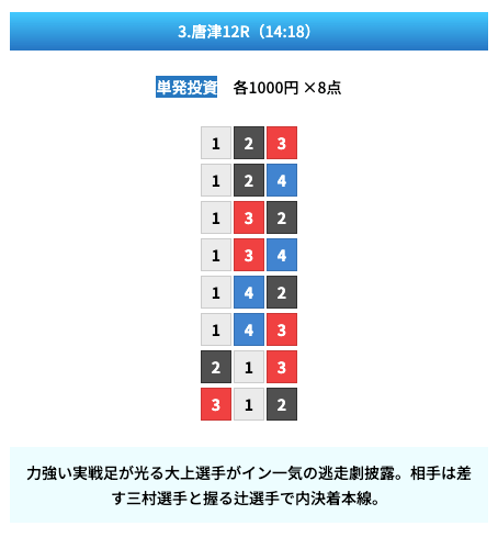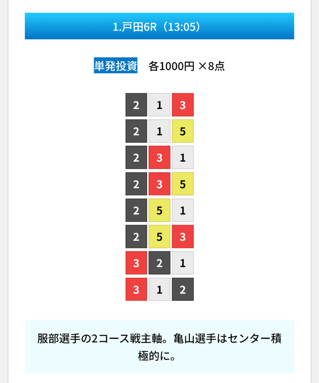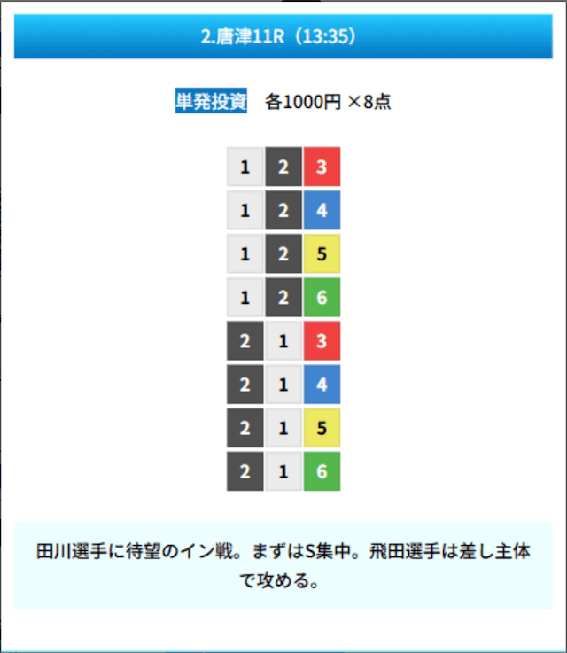 - 試しに無料予想に参加してみたら、いきなり的中して1万ちょいの回収!本当に無料でこれはびっくり。見解も書かれてるから初心者でも参考にしやすかった。投稿日:2025/01/10