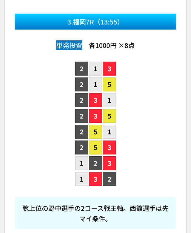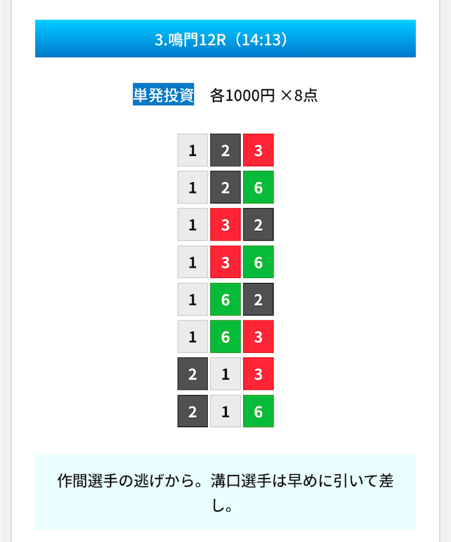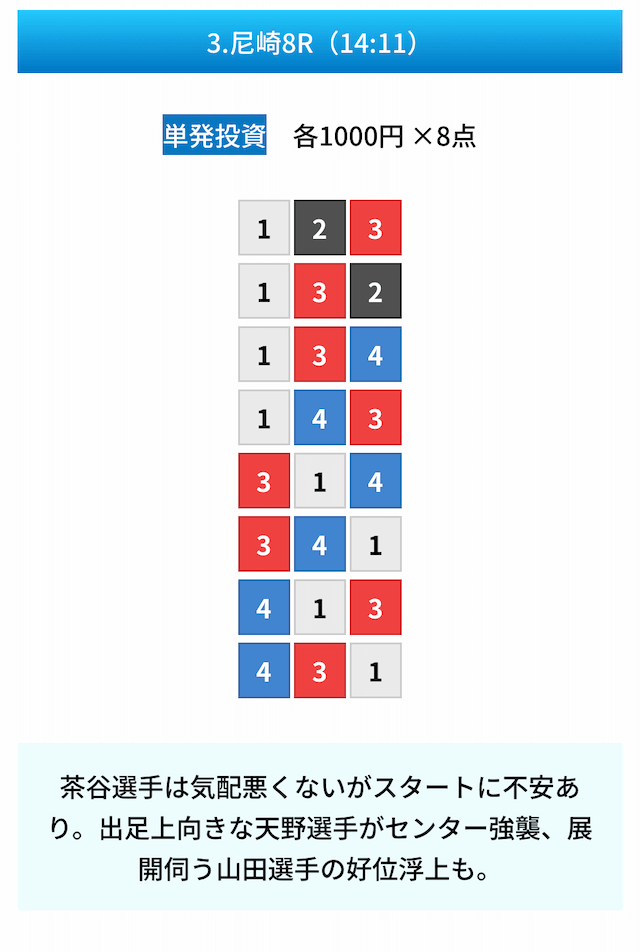 - ゾーンの無料予想は4レースが公開されるんだけど、うち1R目が的中すると、その後のレースも的中しやすい印象がある⋯。少なからず調子の良し悪しが関係しているように思えるし、前半戦は様子を見てから、後半のレースに参加するかどうかを決まるのも手だと思います!投稿日:2024/10/09