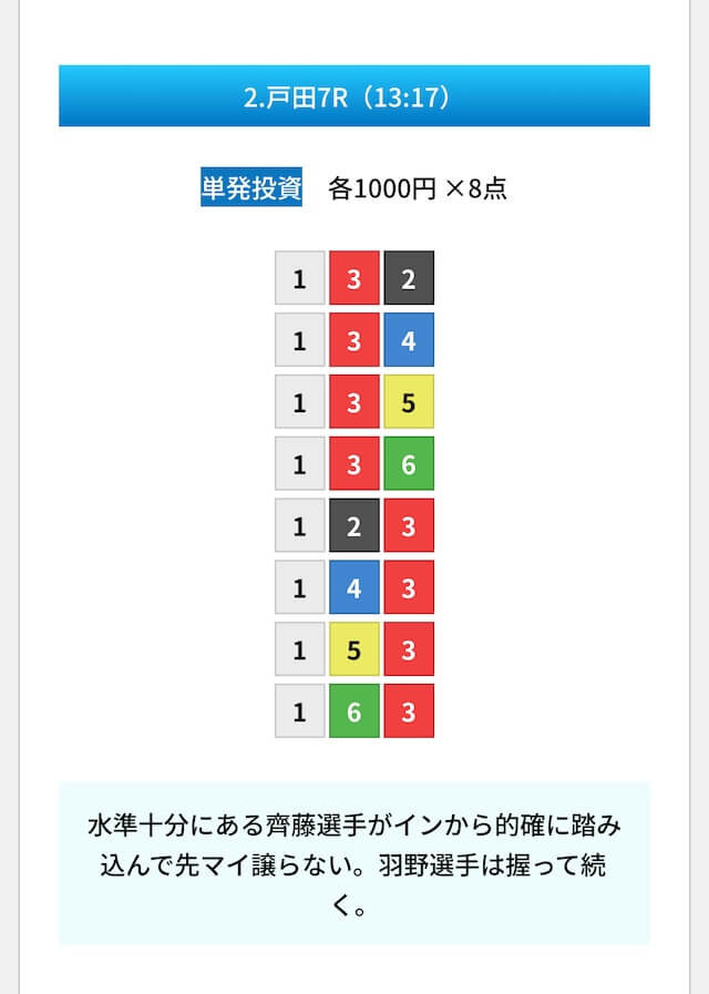- 無料予想には必ず根拠・見解が書かれている