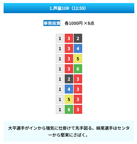 対象は芦屋10Rです。
